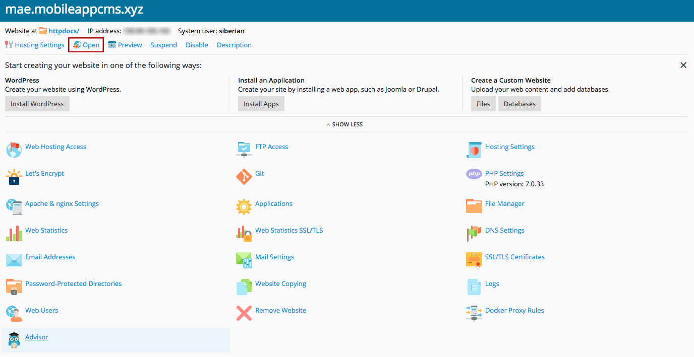 Apache/2.4.25 (Debian) Server at doc.siberiancms.com Port 80